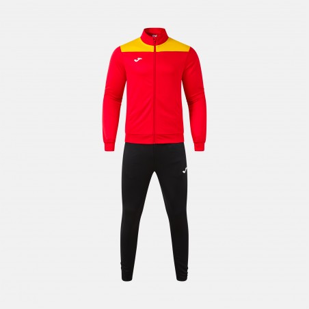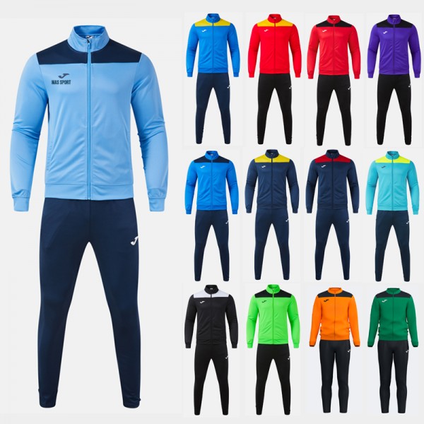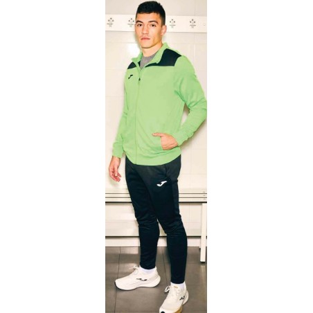 Dres składający się z bluzy z zamkiem błyskawicznym i długich spodni, zaprojektowany w celu zapewnienia doskonałego połączenia wygody, stylu i funkcjonalności podczas każdej aktywności sportowej. Bluza posiada zamek błyskawiczny, ściągacze na mankietach i dole, co gwarantuje pewne i wygodne dopasowanie, a także kieszenie bez zamka błyskawicznego. Natomiast długie spodnie posiadają elastyczną talię i wewnętrzny sznurek zapewniający wygodne dopasowanie. Ponadto, kieszenie z zamkiem błyskawicznym w spodniach pozwalają na łatwe i bezpieczne przechowywanie osobistych przedmiotów. Wykonany z wysokiej jakości, wygodnego i trwałego materiału, ten zestaw jest idealny do zapewnienia maksymalnej wygody podczas treningów lub codziennych aktywności. Logo Joma w nadruku.