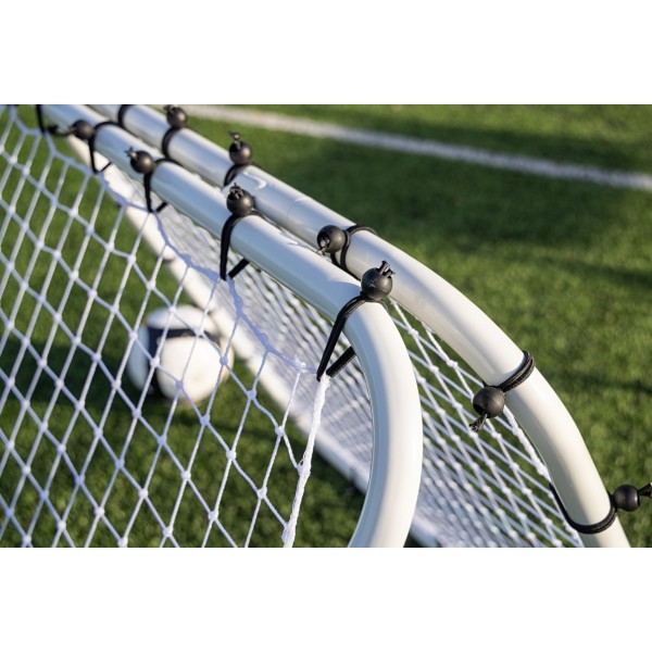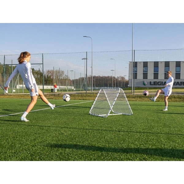 Rebounder podwójny to sprzęt przeznaczony do treningu bramkarzy oraz zawodników z pola. Pozwala na trening dwóch osób jednocześnie. Może być częścią każdego treningu, niezależnie od tego, czy mowa o juniorach, czy drużynach seniorskich. Z jego wykorzystaniem szybko poprawimy technikę zawodników, co przełoży się na lepszą grę. Rebounder pozwala w stosunkowo krótkim czasie udoskonalić przyjęcie piłki, poprawić ułożenie stopy podczas podania i strzału. Co więcej, trening z nim wpłynie na koordynację ruchową oraz umiejętność ustawiania się zawodnika w momencie przyjęcia piłki. W dzisiejszej piłce nożnej to niezbędne wyposażenie każdej grupy treningowej.