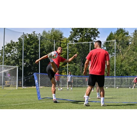 Przypominamy, że zestaw przeznaczony jest do wykorzystania na naturalnej murawie — wymaga wbicia w nią odciągów. Dzięki temu będzie maksymalnie stabilny i świetnie sprawdzi się zarówno na treningowych, jak i pełnowymiarowych boiskach.