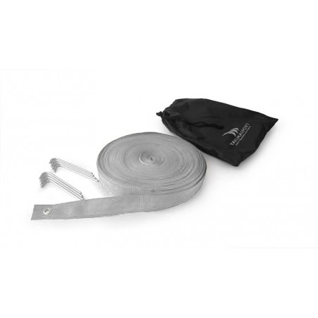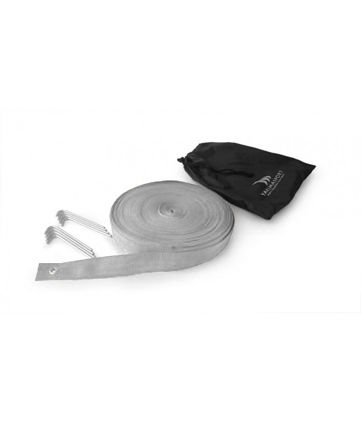 - W skład kompletu wchodzi 8 śledzi, które są wbijane w trawę lub piasek.