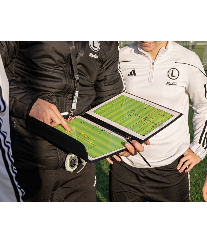 ✅ W środku dwie tablice magnetyczne, suchościeralne: całe boisko oraz połowa boiska