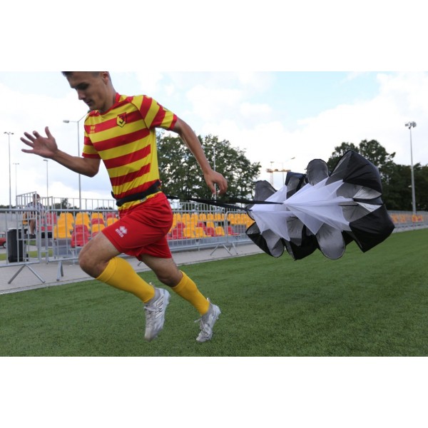 - W czasie biegu spadochron otwierając się stawia opór powietrza który zmusza osobę trenującą do większego wysiłku przez co poprawiamy kondycję zawodnika